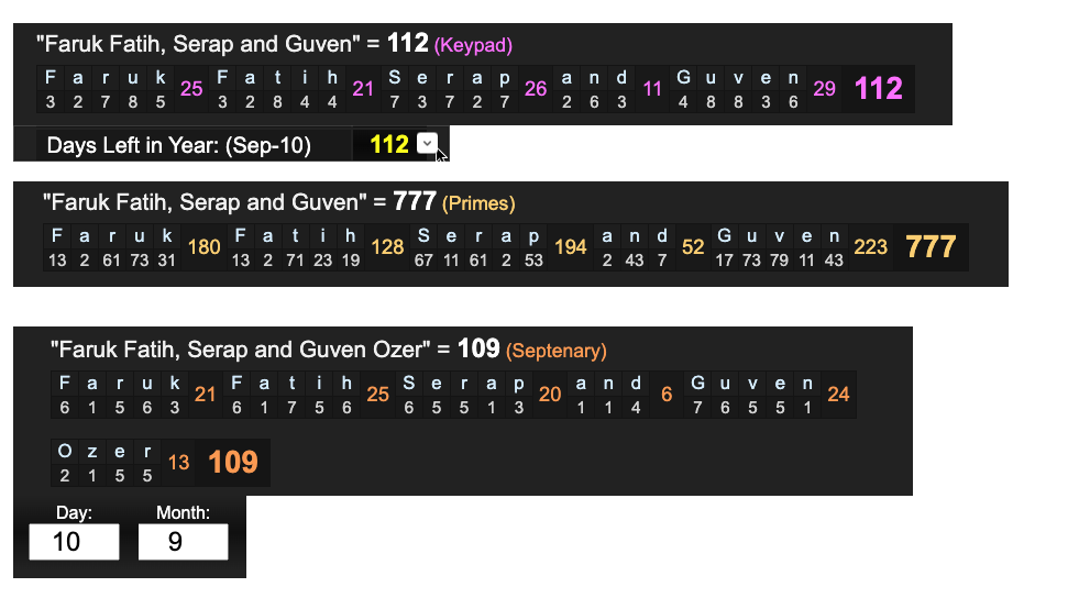 'Faruk' = 112...